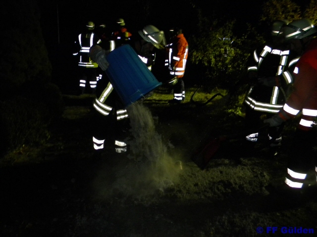 Die Ursache ist bis dato ungeklärt, der Schaden gering, der Schock für die Bewohner eines Einfamilienhauses in Zernien dafür umso größer. Über 40 Feuerwehrkameraden und Kameradinnen konnten eine größeres Unglück verhindern, auch Dank einer Wärmebildkamera, die zum Einsatz kam. Zum Hintergrund: tagsüber wurde im Haus der Zerniener Familie der Dachboden gedämmt. Als Dämmmaterial wurde sogenanntes "Isofloc", eine Zellulosefaser zum Einblasen eingesetzt. Es handelt sich um ein ökologisches Dämmmaterial, versetzt mit Borsalz (Borax), dass die gleichen Eigenschaften wie Mineralwolle besitzt. In dem neu gedämmten Bereich kam es zu einem Schwelbrand der Fasern an mehreren Stellen, verteilt auf über zwei Quadratmetern. Unter Atemschutz hatte die zuerst eintreffende Feuerwehr Gülden, alarmiert durch die Hausbewohner, welche Brandgeruch feststellten, den Schwelbrand lokalisiert und umsichtig Wasser eingesetzt. Das Dämmmaterial wurde aus dem Dachgeschoss in den Vorgarten getragen und dort abgelöscht. So konnten sowohl die Glutnester herausgebracht, als auch Schäden durch den Einsatz von Wasser am Haus vermieden werden. Um das Gesamtausmaß der bestehenden Glutnester und Schwelbrände einschätzen zu können, wurde die in Dannenberg stationierte Wärmebildkamera angefordert, auch die in Hitzacker weilende Führungsstaffel nebst Kreisbrandmeister Claus Bauck erreichte den Einsatzort. Die Ortsfeuerwehr Mützingen wurde nachalarmiert, um den fortwährenden Einsatz von Atemschutzgeräteträgern zu gewährleisten. In den Abendstunden wurden die Löscharbeiten zügig abgeschlossen und der Einsatzort abschließend mit der Wärmebildkamera untersucht, um die Übergabe an die Wohnhausbesitzer sicher zu gestalten. Eine erste Vermutung, dass der Schwelbrand durch einen Kurzschluss im Elektrokabel ausgelöst wurde, konnte durch den anwesenden Elektriker nicht bestätigt werden.