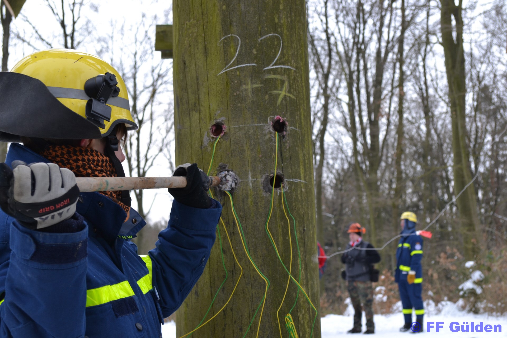 Da solch eine Sprengung nicht ungefährlich ist, wurde ein Bereich von 300m im Radius vollständig durch die Wehren Gülden und Mützingen nebst THW gesichert und für Publikumsverkehr gesperrt. Die Einsatzkräfte waren mit rund 60 Personen angerückt, um die gesamte Aktion zu begleiten. Unser Dank geht an den THW Braunschweig und den Ortsverband Lüchow Dannenberg sowie an die Ortsfeuerwehr Mützingen.