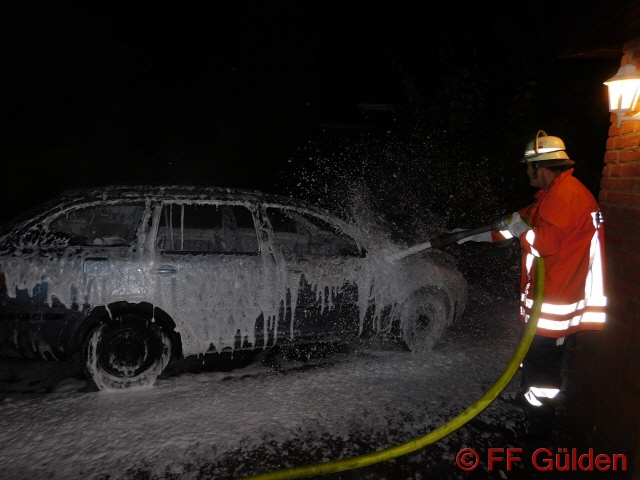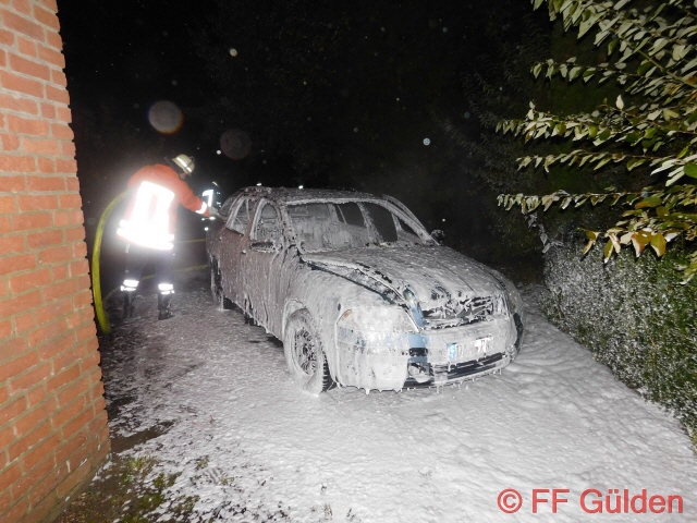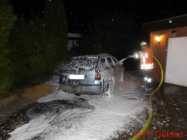 jc. Die Flammen griffen nicht auf die angrenzende Garage über, so das Schlimmeres verhindert werden konnte. In den Abendstunden fing ein PKW auf seinem Stellplatz vor einer Garage am angrenzenden Haus Feuer, nach kurzer Zeit stand das Auto vollständig in Flammen und konnte nur noch abgelöscht werden. Der PKW hat nur noch Schrottwert.