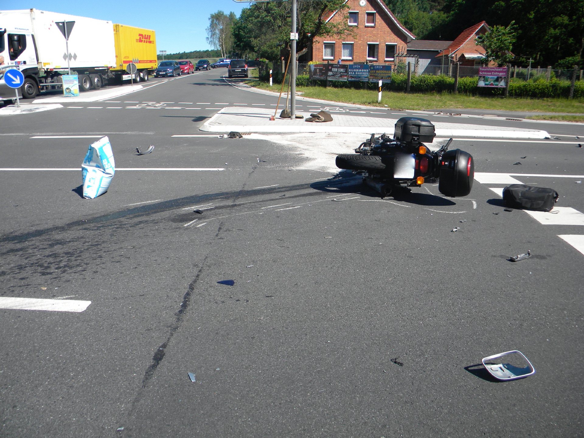 Aus noch ungeklärter Ursache ist ein Motorradfahrer von einem abbiegenden PKW erfasst worden und konnte trotz intensiver Wiederbelebungsmaßnahmen der Rettungskräfte nicht überleben. Der Verkehrsunfall ereignete sich auf der Kreuzung in Pudripp. An der gleichen Stelle gab es schon mehrere schwere Verkehrsunfälle. Die Feuerwehren aus Mützingen und Gülden waren vor Ort und streuten auslaufende Betriebsstoffe des Motorrades ab. Die Strecke war für mehrere Stunden voll gesperrt.
