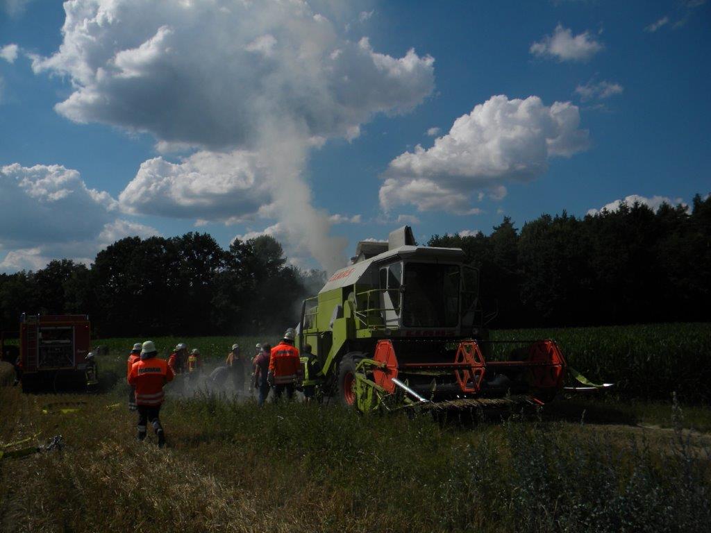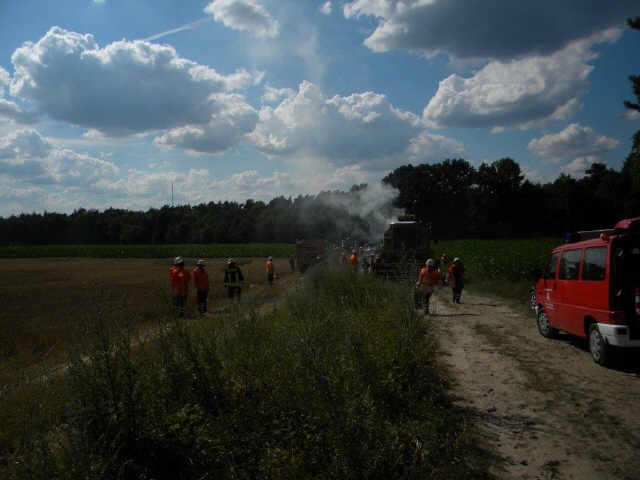 | Kurzbericht: | Waldbrand 1 - brennender Mähdrescher |