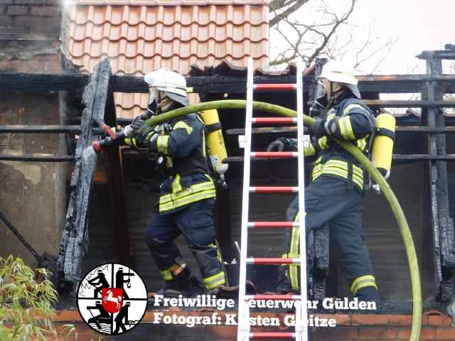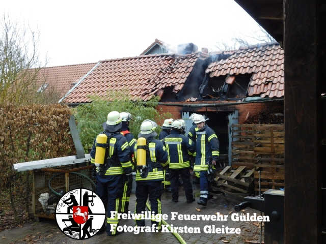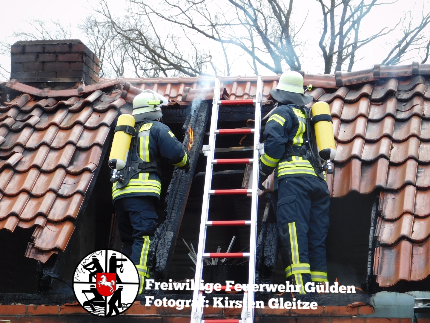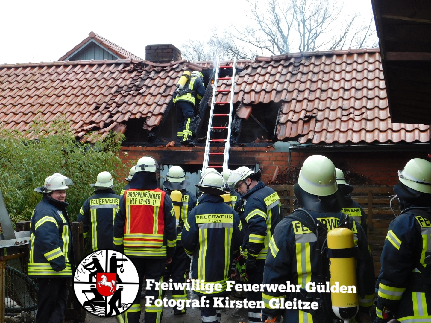 Die nachfolgende Wehren Gülden, Jameln und Dannenberg standen in Bereitschaft, Gemeindebrandmeister Andreas Meyer koordinierte vor Ort den Einsatz. Nach eine Stunde war sowohl der Brand als auch die Brandnester im Dachstuhl gelöscht. Die Polizei nahm die Ermittlungen zur Brandursache auf.