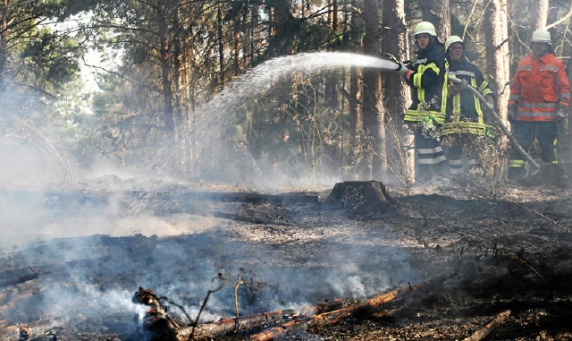 Gamehlen. Ein Feuer im Wald bei Gamehlen in der Gemeinde Karwitz hat am Freitagnachmittag rund 1800 Quadratmeter Unterholz vernichtet. Der Brand war gegen 16 Uhr entdeckt worden, wegen des abgelegenen Unglücksortes und dort entsprechend schwer herzustellender Löschwasserversorgung waren gleich mehrere Wehren der Samtgemeinde Elbtalaue auch per Sirene alarmiert worden, die mit ihren Tanklöschfahrzeugen Wasser zum Einsatzort brachten. Zusätzlich zum Löschwassereinsatz bekämpften Einsatzkräfte die Flammen mit sogenannten Feuerpatschen, auch Löschrucksäcke kamen zum Einsatz. "Wir haben schnell mit viel Personal auf eine unklare, aber potenziell sehr gefährliche Lage reagiert und so den Schaden eingrenzen und Schlimmeres verhindern können", so Lüchow-Dannenbergs Kreisbrandmeister Claus Bauck. In dem trockenen Wald mit viel Totholz und trockenem Gras am Boden hätte das Feuer durch den zum Unglückszeitpunkt herrschenden Wind leicht auf ein großes Areal übergreifen und sich zu einem gefährlichen Waldbrand entwickeln können, so Bauck.