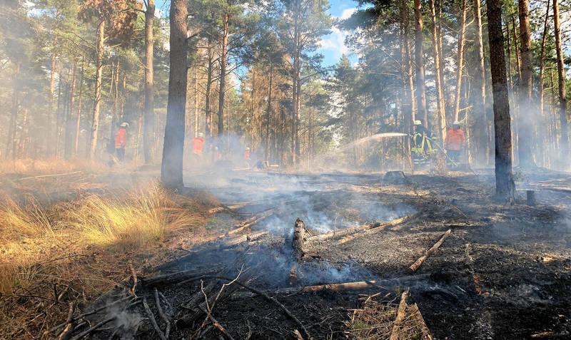 Die Löscharbeiten dauerten mehr als zwei Stunden, die anschließende Brandwache übernahm die Feuerwehr Karwitz. Wie es zu dem Unglück kommen konnte, ist derzeit noch unklar, die Polizei hat vor Ort Ermittlungen aufgenommen. Da zum Zeitpunkt des Ausbruchs des Feuers dort im Wald keine Arbeiten stattfanden und der Brandort abseits der Wege mitten im Wald auf einem Hügel liegt, wo der Wind kräftiger weht, geht man in Feuerwehrkreisen von Brandstiftung aus - fahrlässige oder auch vorsätzliche. rg