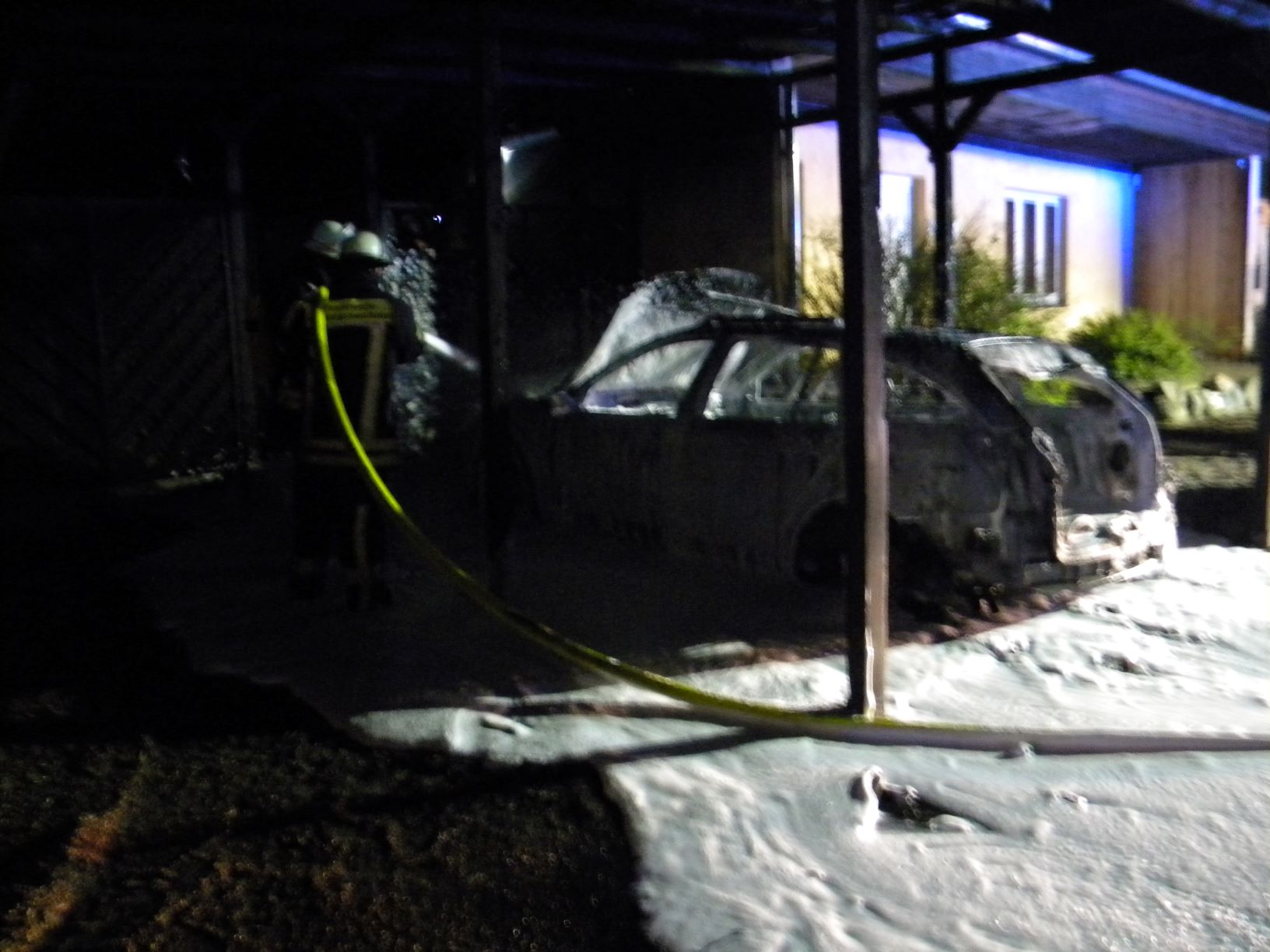 Die Brandursache ist laut Polizei derzeit noch unbekannt. Das Fahrzeug ist vollkommen zerstört, das Carport ist ebenfalls abrissfällig. Die Einsatzstelle wurde um 3.30 Uhr an die Polizei übergeben.