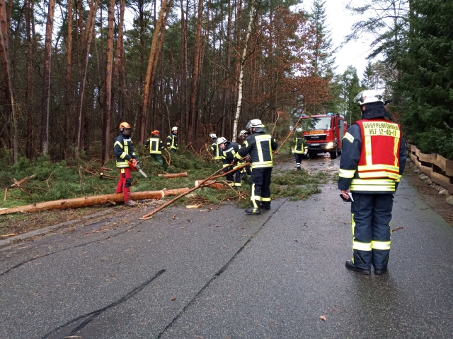 Doch es kam anders: Die ersten Bäume stürzten bereits gegen 18:30 Uhr um, ab 20:00 Uhr kamen dann die Meldungen im Minutentakt. Zeitweise wurden Windgeschwindigkeiten von 100 km/h gemessen. Gut 200 Einsätze hat die Freiwillige Feuerwehr für Lüchow-Dannenberg innerhalb von 16 Stunden abgearbeitet, die Straßenmeistereien rückten in etwa 100 Fällen aus. Unzählige Bäume mussten von Straßen oder Häusern genommen werden. In einigen Fällen beschädigten die Bäume Stromleitungen, Teile der Samtgemeinde Gartow und der Gemeinde Schnega waren in der Nacht über Stunden ohne Strom. Dies stellte auch die Einsatzkräfte vor große Herausforderungen: kein Faxgerät, keine E-Mails – aber die Funkgeräte versahen ihren Dienst.